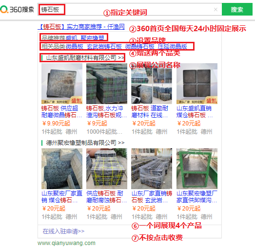 從另一個角度理解,可以將其認知為360首頁的固定包年廣告位,按詞售賣且無輪展。